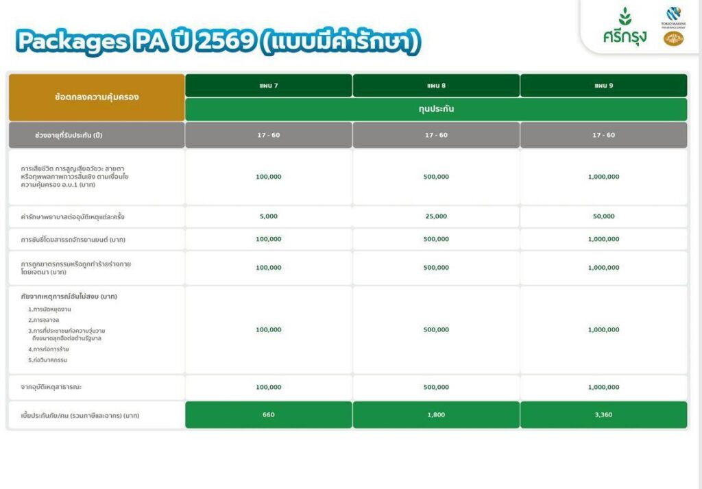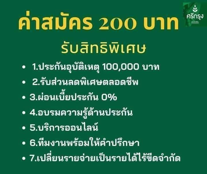 สำหรับผู้ที่สมัครในราคา 200 บาท จะได้รับประกัน PA ทุนประกัน 100,000 บาท ในขณะที่การสมัครในราคา 250 บาท จะได้รับประกัน PA ทุนประกัน 200,000 บาท พร้อมทั้งยังมีโอกาสสร้างรายได้เสริมจากการแนะนำและการทำธุรกิจอย่างยั่งยืน.